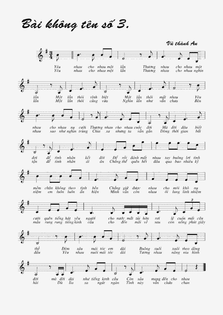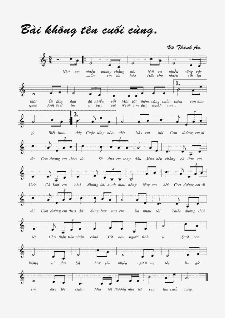 Năm 1965 NS Vũ Thành An sáng tác nhạc phẩm “Tình Khúc Khứ Nhất” (Lời: Nguyễn Đình Toàn) để kỷ niệm một mối tình, và ông nổi tiếng ngay từ ca khúc đầu tay này. Sau đó ông sáng tác tiếp các “Bài Không Tên Số 1, 2, 3, 4”. Cuộc tình của ông kéo dài được một năm thì chấm dứt, tác phẩm “Bài Không Tên Cuối Cùng” đánh dấu thời điểm đó. Sau “Bài Không Tên Cuối Cùng”, NS Vũ Thành An quay lại sáng tác tiếp các “Bài Không Tên Số 5, 6, 7″… không theo một thứ tự nào.