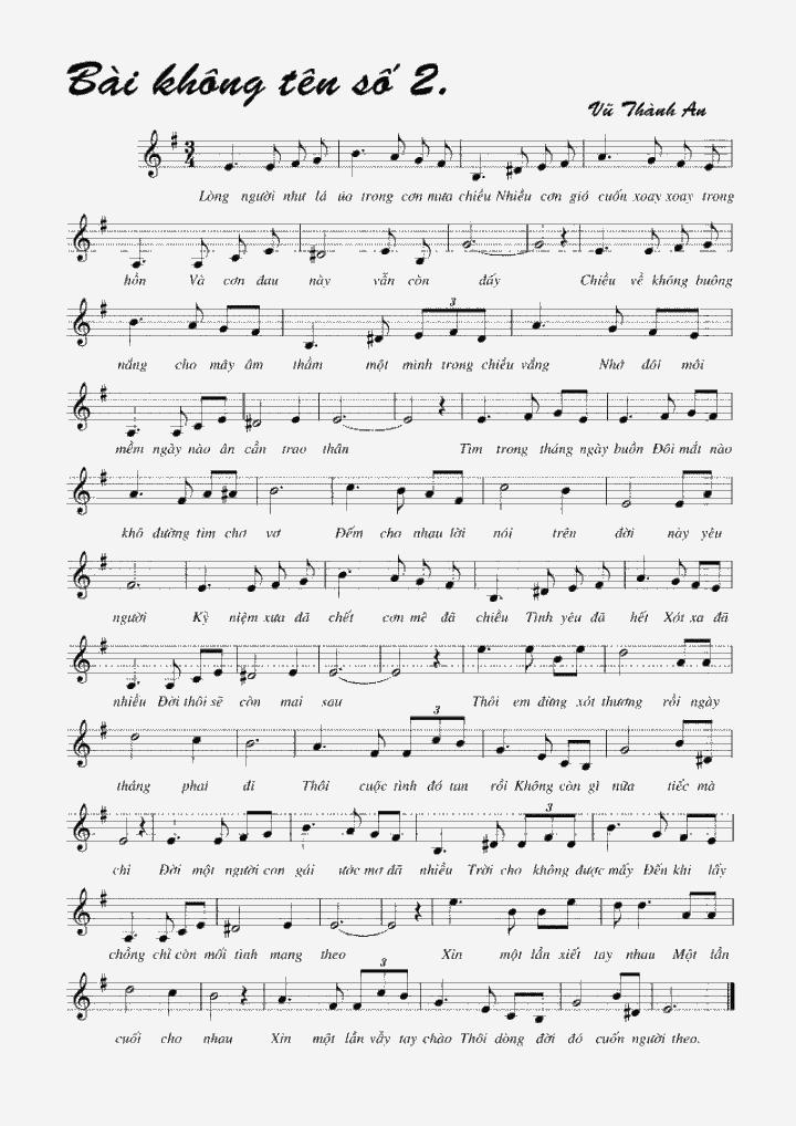 Lời ca “Từng người tình bỏ ta đi như những dòng sông nhỏ. Ôi những dòng sông nhỏ, lời hẹn thề là những cơn mưa” của “người viết tình ca” Trịnh Công Sơn tự khi nào lại nên thân quen, gần gũi và phù hợp với tâm trạng, hoàn cảnh của Vũ Thành An đến thế. Sau một cuộc tình buồn, ông tiếp tục nếm trải hương vị chia ly của mối tình thứ hai và lúc này Bài không tên số 2 lại ra đời đánh dấu “chữ ký âm nhạc” Vũ Thành An, người chuyên viết bi ca trên địa hạt âm nhạc Sài Gòn thời đó.