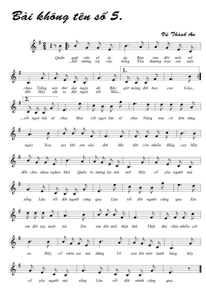 Ngô Thụy Miên, Lê Uyên Phương, Từ Công Phụng, Trịnh Công Sơn và Vũ Thành An tạo thành một nhóm “ngũ nhạc” làm rạng danh bầu trời âm nhạc Việt Nam suốt những thập niên 50, 60 và 70 của thế kỷ trước. Họ chính là đại diện tiêu biểu cho một thế hệ cầm bút viết tình ca bằng những đứt đoạn con tim, trái ngang và day dứt khôn nguôi của tình chia lìa. Sau những triết lý về kiếp đời trần ai của Trịnh Công Sơn, những cuộc tình sầu bi của Từ Công Phụng và sự lãng mạn, mơ hồ với những vết thương ngọt lịm cứa sâu vào tim của Ngô Thụy Miên… khán giả Sài Gòn nói riêng và khán giả trên ba miền dọc chiều dài đất nước nói chung không khỏi ngỡ ngàng với một loạt những sáng tác không tên của nhạc sĩ tài năng Vũ Thành An.