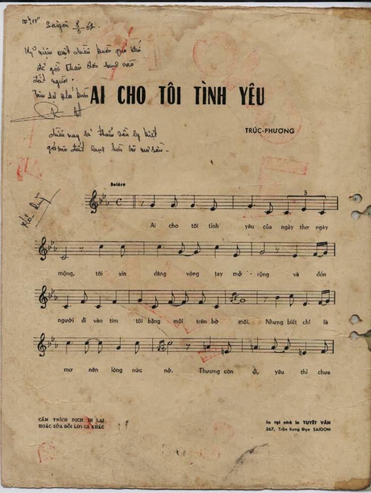Nhạc sĩ Trúc Phương đã yêu, đã sáng tác nhiều ca khúc Bolero trữ tình nổi tiếng. Khó ai có thể quên được những Đò chiều, Nửa đêm ngoài phố, Tàu đêm năm cũ, Mưa nửa đêm, Ai cho tôi tình yêu, Chiều cuối tuần… man mác tâm sự cô đơn của ông. Nhạc của ông đem lại cho người khác hạnh phúc; người thưởng ngoạn có được những bài Bolero vừa bình dân vừa bác học; chủ hãng băng đĩa in sang vô tội vạ làm giàu khá nhanh. Còn riêng ông, ông được gì? Một cuộc sống hạnh phúc vụt khỏi tầm tay, một đời cô đơn cho đến khi nhắm mắt xuôi tay trở thành người thiên cổ và những mối tình đứt đoạn như những dây tơ đàn lên quá diapason.