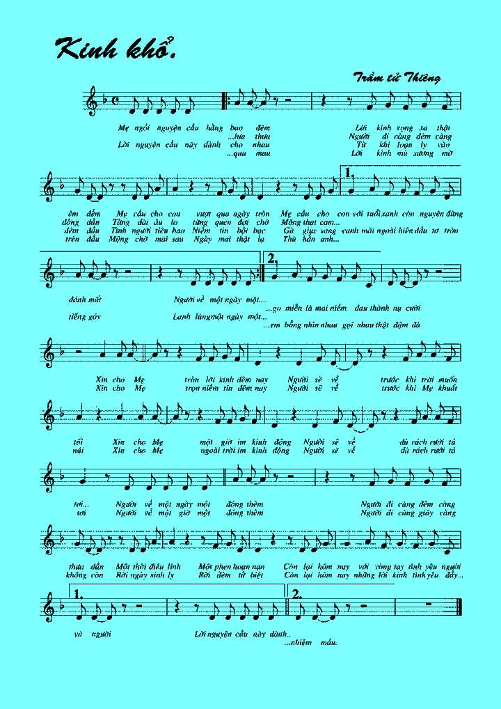Cũng như ca khúc “Chuyện Một Chiếc Cầu Ðã Gẫy” sau này; với “Kinh Khổ’ từ hàng chục năm trước, Trầm Tử Thiêng/Nguyễn Văn Lợi đã “dẫn truyện” bằng hình ảnh người Mẹ – Người Mẹ Việt Nam:
