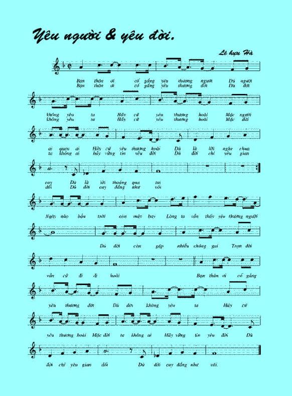 Hôm nay mình giới thiệu đến các bạn các ca khúc “Tôi Muốn”, “Vào Hạ”, “Hãy Yêu Như Chưa Yêu Lần Nào”, “Hãy Nhìn Xuống Chân”, “Huyền Thoại Người Con Gái”, “Yêu Người Yêu Đời”, “Yêu Em” của Nhạc sĩ Lê Hựu Hà.
