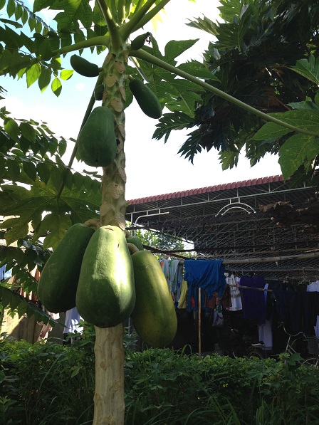 2/ Ảnh cây đu đủ nhỏ trong vườn Lưu trú.3/ Hình ảnh cây đu đủ với quả ươm mơ trước sân phơi áo quần của các em Lưu trú.4/ Ảnh giàn chanh dây ngay góc vườn là nơi các em học sinh Lưu trú chuyên chăm ra thăm những giờ rảnh rỗi trong ngày, cũng là nơi đong đầy kỷ niệm của tuổi học trò.