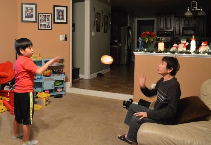 Xmas2015_1 January 3, 2016 706 × 484 Ảnh sinh hoạt hằng ngày – Đêm Giáng Sinh 24.12.15 Ông ngoại và Gavin chơi thảy cầu, với quà GS trái cầu sáng của Gain mới có