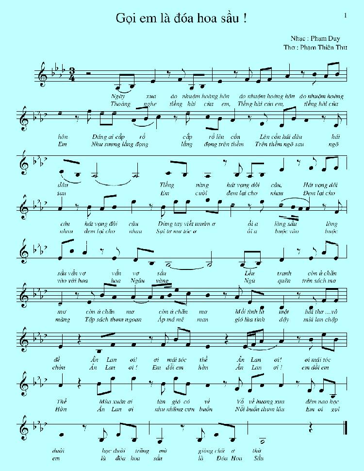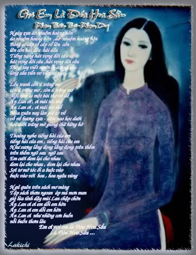 Trước tiên trong tiết mục “Thơ Phổ Nhạc”, mình giới thiệu đến các bạn các thi khúc “Đưa Em Tìm Động Hoa Vàng”, “Ngày Xưa Hoàng Thị”, “Em Lễ Chùa Này”, “Gọi Em Là Đoá Hoa Sầu” của Thi sĩ Phạm Thiên Thư và Nhạc sĩ Phạm Duy.