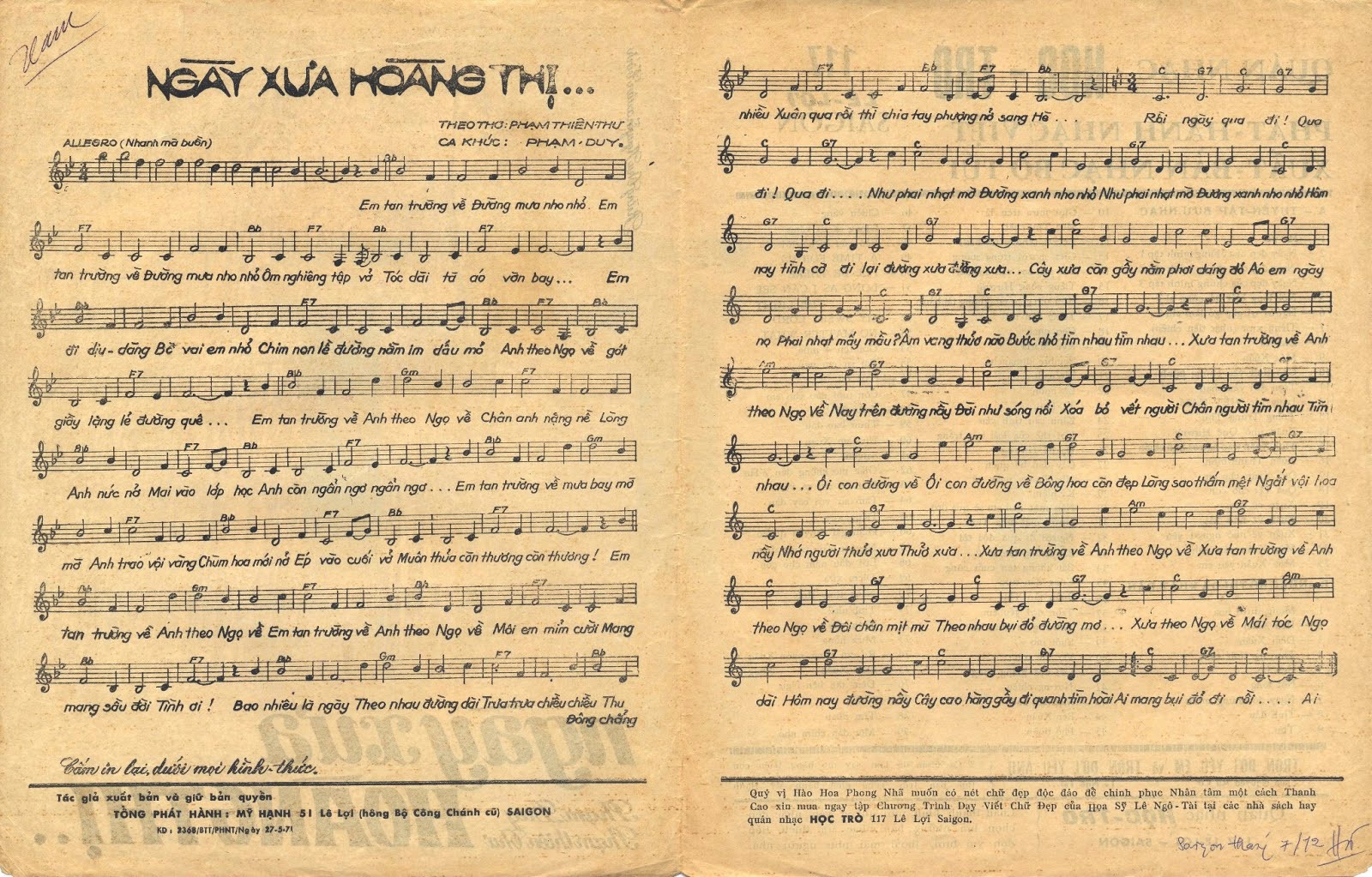 Phạm Thiên Thư vừa cho chúng ta biết một chút lý lịch của bài thơ Ngày Xưa Hoàng Thị, bài thơ này đã một thời gây sóng gió trong khuôn viên các trường Trung cũng như đại học tại Việt Nam vào đầu những năm bảy mươi. Nhạc sĩ Phạm Duy đã tinh tế khi chọn bài thơ này để phổ nhạc và sau đó hàng loạt bài khác của Phạm Thiên Thư liên tục chiếm lĩnh đài phát thanh Sài Gòn trong nhiều năm trời.