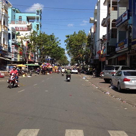 1/ Ảnh con đường trước cổng chợ lớn Tp. Plieku tỉnh Gialai ngày 29 Tết năm 2016. Ít người qua lại không sầm uất đông đúc như những ngày lễ lớn trong năm mặc dầu lúc này đã 10g00 sáng.2/ Ảnh một góc cổng chợ lớn Tp. Plieku tỉnh Gialai lúc 10g00 sáng ngày 29 Tết năm 2016.