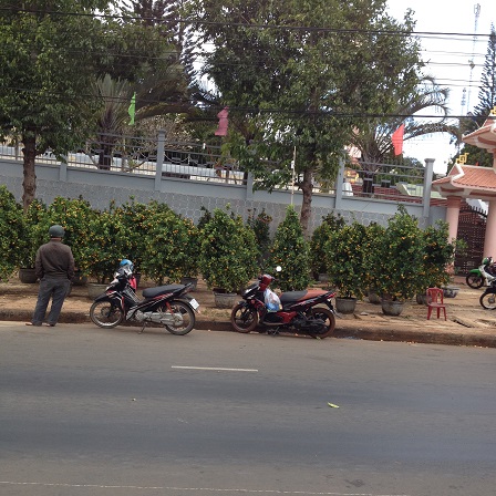 1/ Ảnh điểm bán cây quất cảnh trước ủy ban nhân dân huyện Ea H’Leo 9g00 sáng ngày 28 Tết 2016, chỉ thấy người canh giữ không thấy người mua.2/ Ảnh vắng khách mua trước điểm bán hoa chưng Tết, trên vỉa hè quốc lộ 14 trước ủy ban nhân dân huyện Ea H’Leo 9g00 sáng ngày 28 Tết 2016.3/ Ảnh điểm bán hoa chưng Tết trên quốc lộ 14 trước ủy ban nhân dân huyện Ea H’Leo 9g00 sáng ngày 28 Tết 2016, cũng chỉ thấy người canh giữ không thấy người mua.