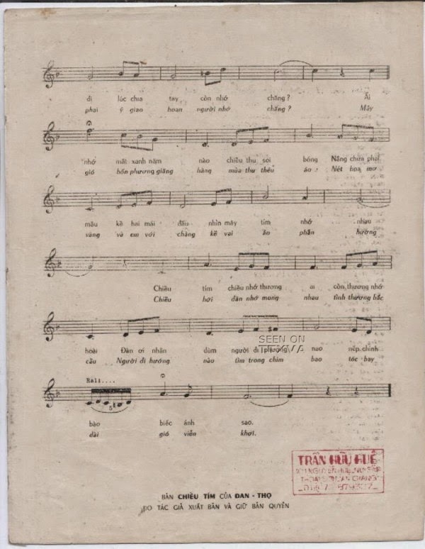 Nói rằng ông tiếc vì là kỷ vật nửa thế kỷ của một nhạc sĩ thì ta có thể thông cảm. Nhưng nếu biết người ấy là Ðan Thọ thì mọi người đều xót xa. Quỳnh Giao xin viết về ông, như một lời thăm hỏi gửi từ rất xa, và nhắc đến ông như một người đã xa quê hương quá nhiều lần.