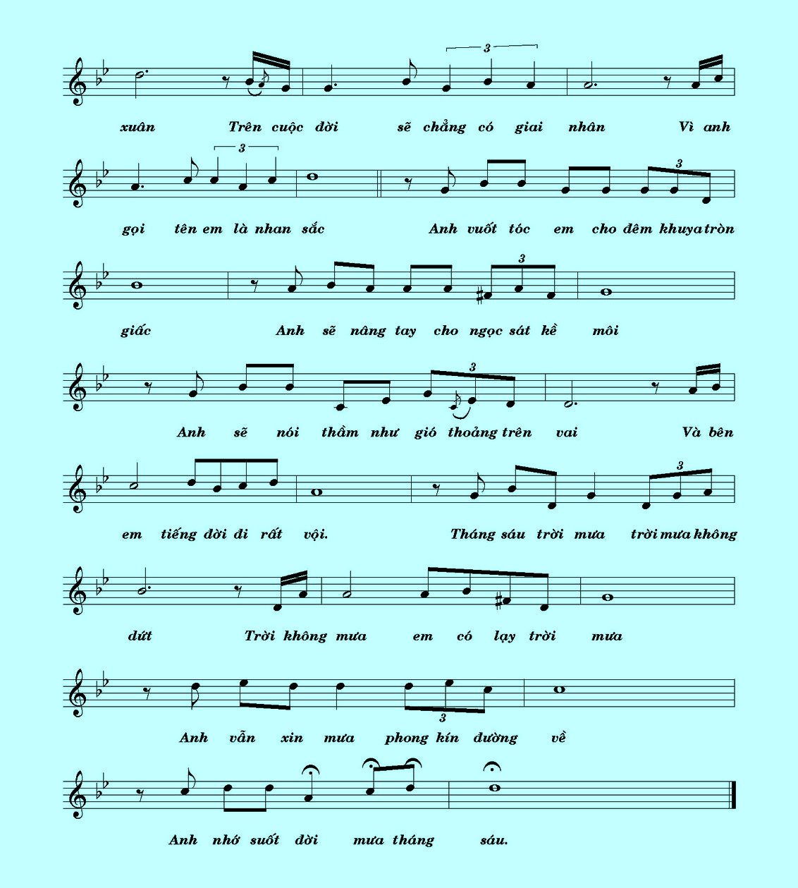 …Cuối năm 1970, trong một đêm nhạc tình ca tại trường đại học Khoa Học, tôi đã giới thiệu bài hát tới các bạn trẻ của tôi. Sau đó bản nhạc đã được phổ biến thường xuyên qua các chương trình nhạc do tôi và nhạc sĩ Trường Sa thực hiện trên đài phát thanh Quân Đội, cũng như trong các đêm nhạc do bạn bè chúng tôi tổ chức tại Sài Gòn. Ngoài ra trong năm 1970, tôi cũng đã viết Tình Khúc Tháng Sáu phổ theo ý thơ bài Tháng Sáu Trời Mưa của Nguyên Sa. Mãi đến năm 1984 tôi mới phổ bài Tháng Sáu Trời Mưa của ông.
