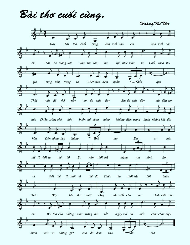 Hôm nay mình giới thiệu đến các bạn thi khúc “Bài Thơ Cuối Cùng” của Thi sĩ TTKH và Nhạc sĩ Hoàng Thi Thơ.