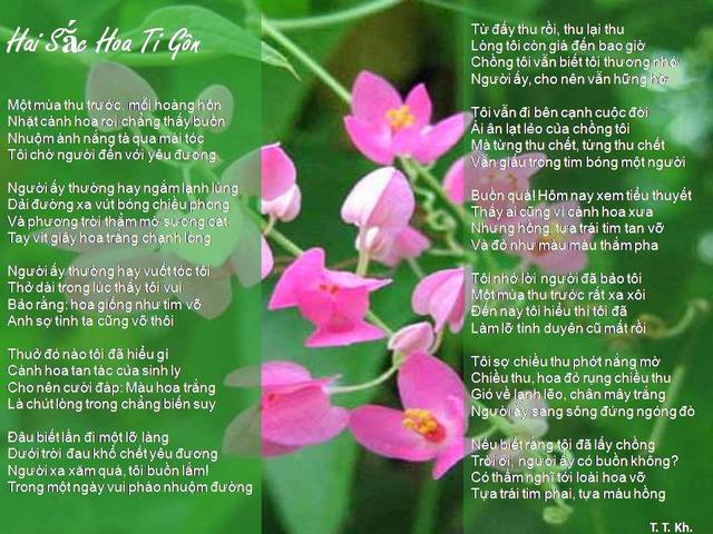 Hôm nay mình giới thiệu đến các bạn các thi khúc “Chuyện Tình TTKH” (“Hai Sắc Hoa Tigôn”) của Thi sĩ TTKH và Nhạc sĩ Song Ngọc.