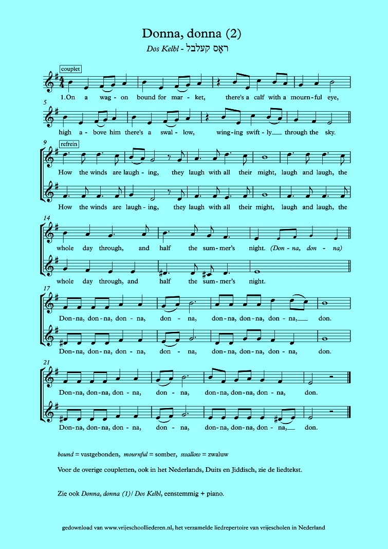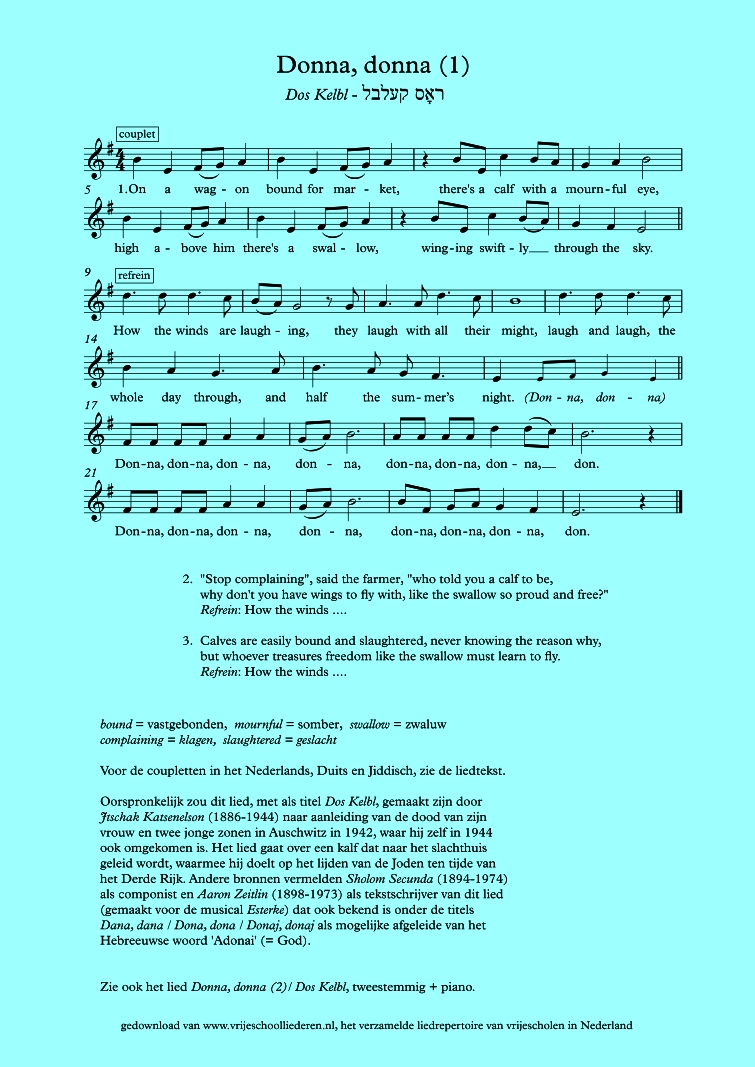 Nhạc phẩm “Donna Donna” (“Dos kelbl”, “The Calf”, “Dana Dana” – Bản dịch tiếng Anh của hai nhạc sĩ Arthur Kevess và Teddi Schwartz).
