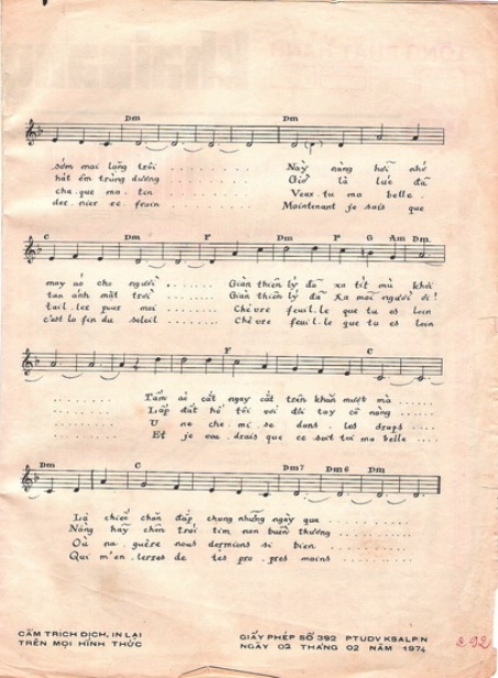 Thế nhưng, theo cung bậc của bản Scarborough Fair/Chèvrefeuille que tu es loin và vần bằng trắc trong tiếng Việt, không dịch “garçon” thành “thằng bé, đứa bé” thì sử dụng chữ gì cho xứng hợp? Câu hỏi ấy, trong hơn 40 năm qua, cứ mỗi lần nghe lại bản Chèvrefeuille que tu es loin – Giàn thiên lý đã xa, chúng tôi lại cố nặn óc tìm một lời giải đáp, để rồi cuối cùng chịu thua.