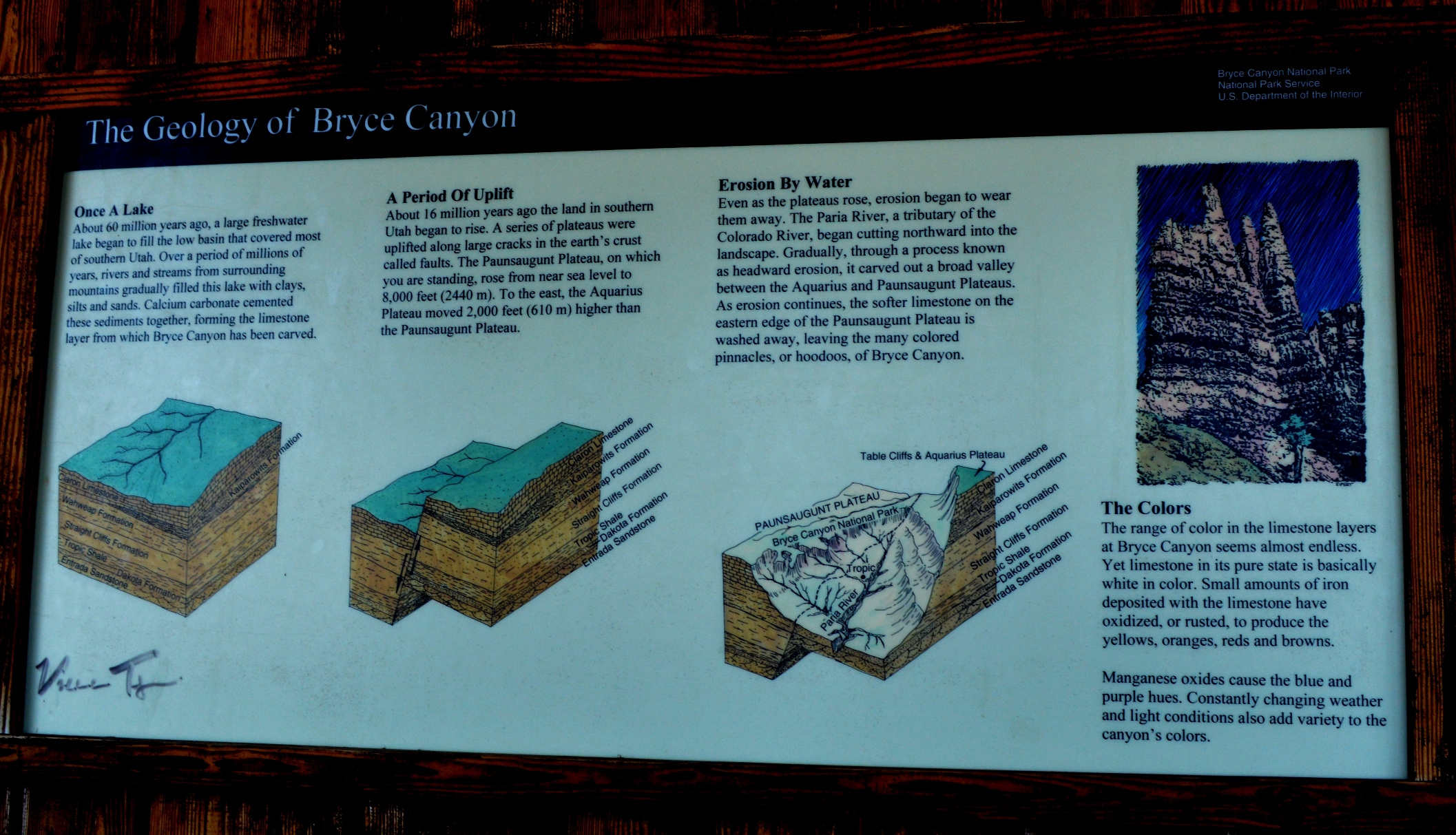 Công Viên Quốc Gia “Bryce Canyon National Park” nằm ở phía tây nam của tiểu bang Utah, United States. Phần chính của công viên là Bryce Canyon, dù có tên như thế, nhưng công viên không phải là canyon, nhưng mà là một bộ sưu tập những hí trường (amphitheater) thiên nhiên khổng lồ dọc theo bờ đông của Paunsaugunt Plateau. Sở dĩ từ amphitheater được dùng vì những dãy núi tròn như những hình tròn đồng tâm nhìn giống các amphitheaters ngoài trời ngày xưa được xây dựng để xem dũng sĩ giác đấu, hay ngày nay là các sân vận động hoặc sân nhạc ngoài trời.
