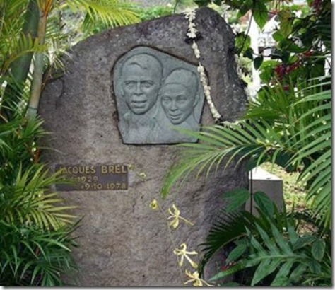 Như đã viết ở phần đầu, thi hài ông được đưa về an táng trong nghĩa trang Calvary Cemetery trên đảo Hiva Oa. Có điều hơi khác thường nhưng không khiến ai ngạc nhiên, là trên bia mộ bằng đá tạc chân dung Jacques Brel, người ta đã không quên tạc cả chân dung Maddly Bamy đang âu yếm tựa cằm lên vai ông.
