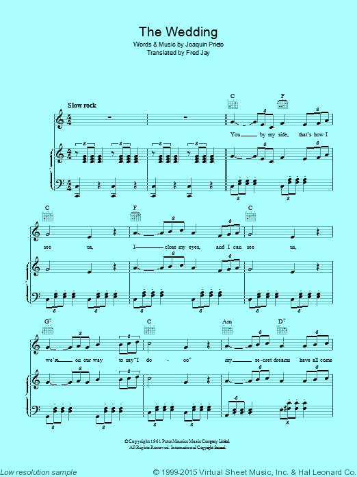 The Wedding nguyên là bản La Novia (tiếng Tây-ban-nha: Cô Dâu) của tác giả Joaquin Prieto, sáng tác năm 1958. Joaquin Prieto là một nhạc sĩ dương cầm ở Chí-lợi (Chile); về sáng tác ca khúc, các tài liệu chúng tôi có được không cho biết ngoài La Novia ông có viết bản nào khác hay không. Trước sau, Joaquin Prieto chỉ hành nghề tại Chí-lợi, và tên tuổi của ông chỉ được quốc tế biết tới sau khi người anh/em trai ruột Antonio Prieto thu đĩa bản La Novia tại Buenos Aires, thủ đô Á-căn-đình, vào năm 1961.