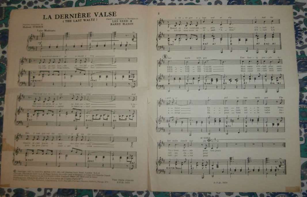 Cũng trong năm 1967, The Last Waltz đã được tác giả Hubert Ithier đặt lời Pháp với tựa La Dernière Valse, có thể gọi là một bản dịch tuyệt vời từ lời hát trong nguyên tác.