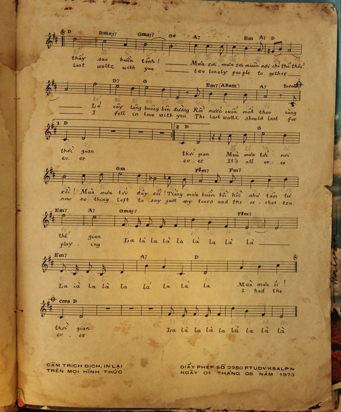 Tại Sài Gòn ngày ấy, do ảnh hưởng của văn hóa Pháp, người nghe nhạc ngoại quốc đã biết tới, và yêu thích La Dernière Valse của Mireille Mathieu (và của Petula Clark thu đĩa năm 1968) trước khi biết tới The Last Waltz của Engelbert Humperdinck qua làn sóng điện các đài phát thanh của Hoa Kỳ.