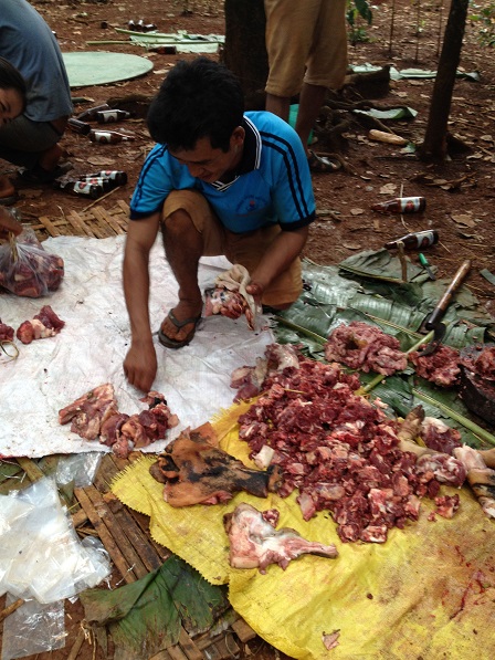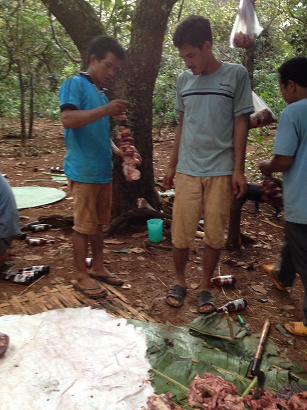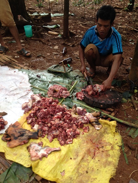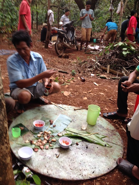 Biết vậy, nhưng trên thực tế mình mới chỉ nghe chưa thấy, do những năm ở Buôn Hằng là Buôn toàn tòng công giáo, mình không còn thấy chuyện ăn uống trong đám tang, vì anh em Buôn Làng đã được các Bok khuyên và hạn chế. Nhưng bây giờ về Bù Đăng tình cờ mình vào Sóc Bù Có, Sóc của anh em đồng bào Stiêng biết có đám tang bà Điểu Thị Ú – Sinh năm 1945 – Mất 10/ 10/ 2016 mình đã đến viếng, và chứng kiến gia đình làm hai con heo to, một con bò để ăn trong đám tang của bà Điểu Thị Ú.