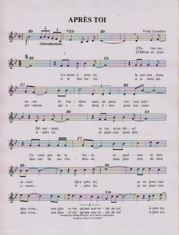 Nhạc phẩm “Après Toi” (Tác giả: Leandros Papathanasiou [Mario Panas], Klaus Munro)