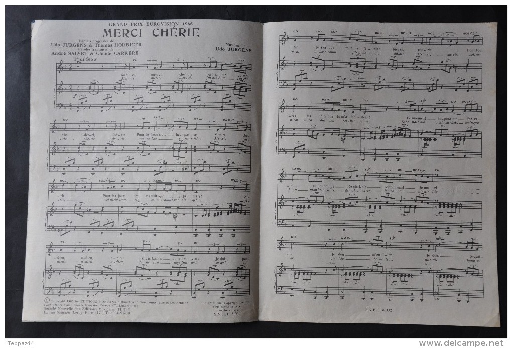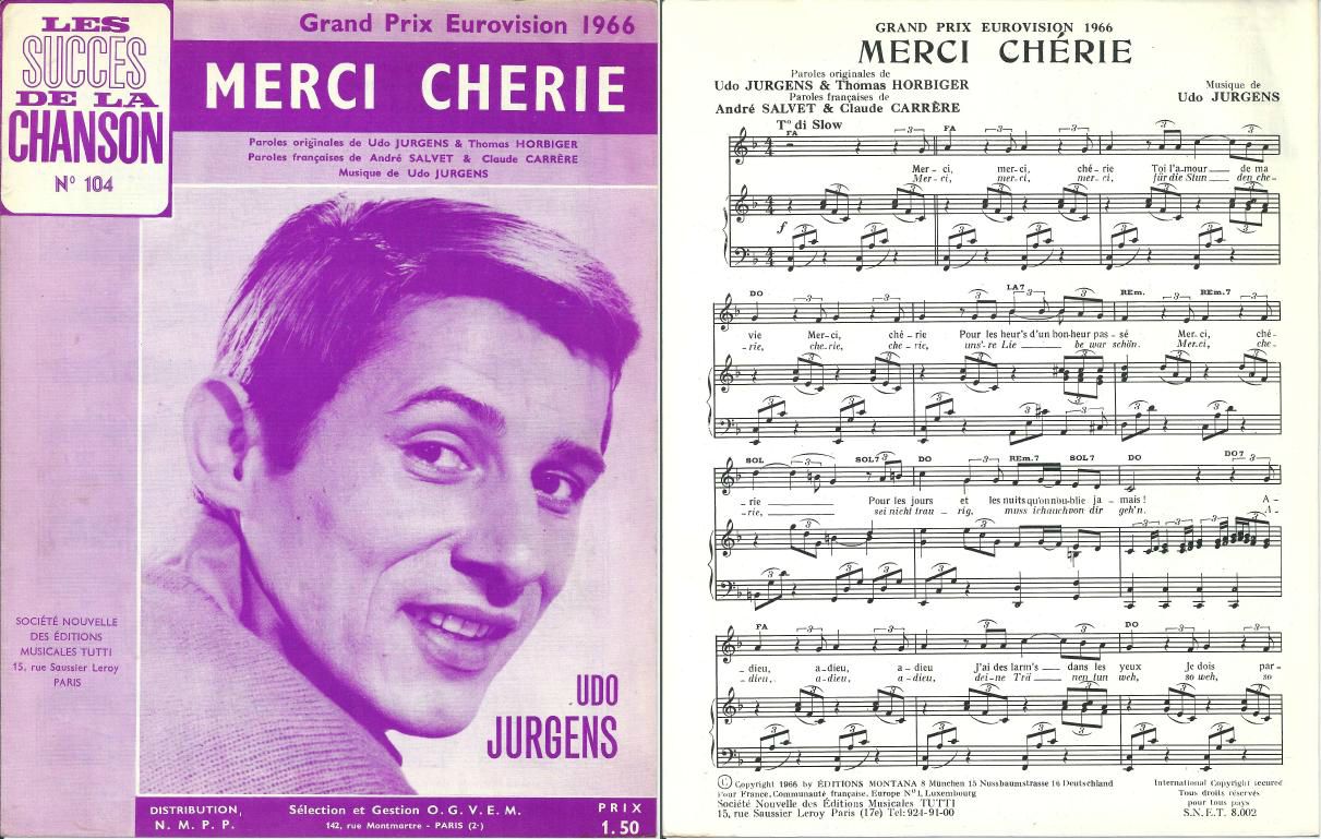 “Merci, Chérie” là bản nhạc thắng giải “Eurovision Song Contest 1966”, được Udo Jürgens hát dự thi đại diện nước Áo, với lời Đức, dù là tên của bản nhạc là tiếng Pháp. Nội dung bản nhạc là lời của một anh cám ơn người yêu về những thời gian hạnh phúc bên nhau.