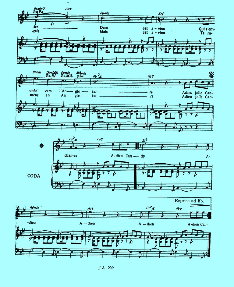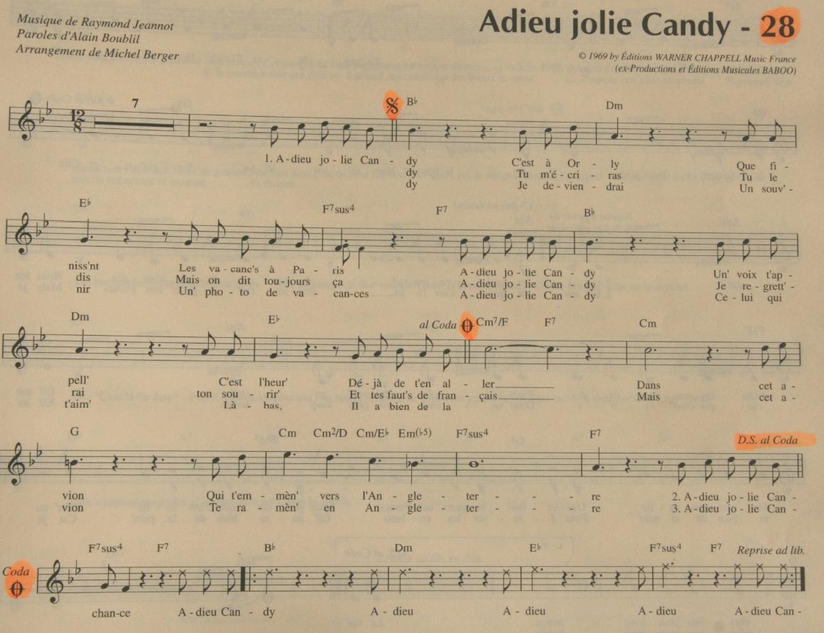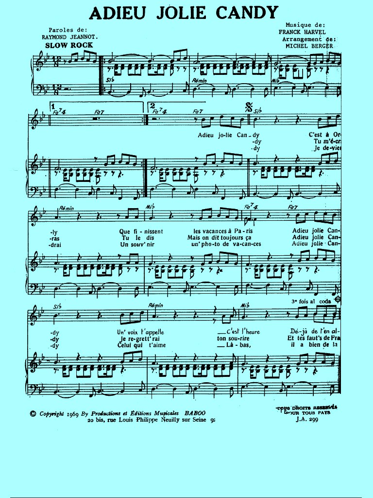 Adieu Jolie Candy do Raymond Jeanot soạn nhạc, Alain Boublin và Michel Hursel đặt lời.