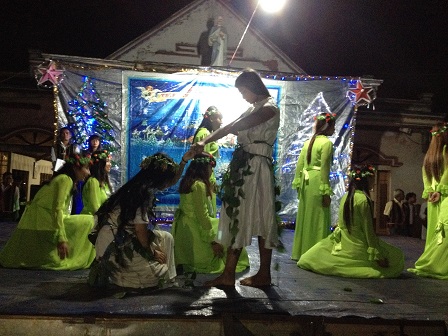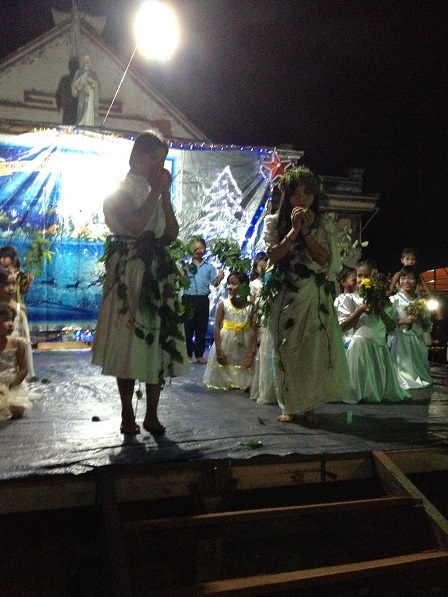 Nội dung buổi Canh thức: Diễn lại lịch sử Cứu độ theo Thánh kinh từ thời Thiên Chúa Tạo Dựng đến lúc Chúa Giêsu Giáng Sinh trong hang đá tại Belem.