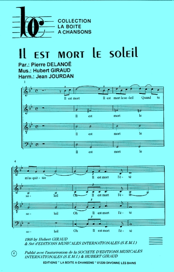Nhạc phẩm “Il Est Mort Le Soleil” (Auteurs: Pierre Delanoe, Compositeurs: Hubert Giraud)