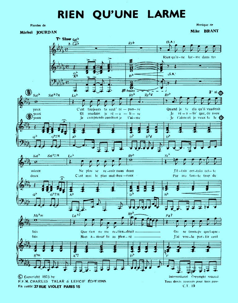 Nhạc phẩm “Rien Qu’une Larme” (Tác giả: Michel Jourdan, Moshé Brand (Mike Brant))