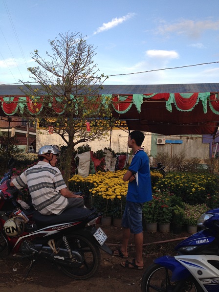 Khoảng năm giờ chiều hai mươi lăm Tết, mình ghé vào “Hội chợ Hoa quả năm 2017” của thị trấn Bù Đăng, và quang cảnh trong Hội chợ Hoa quả không có người mua cũng như người đến xem làm mình khá ngạc nhiên.
