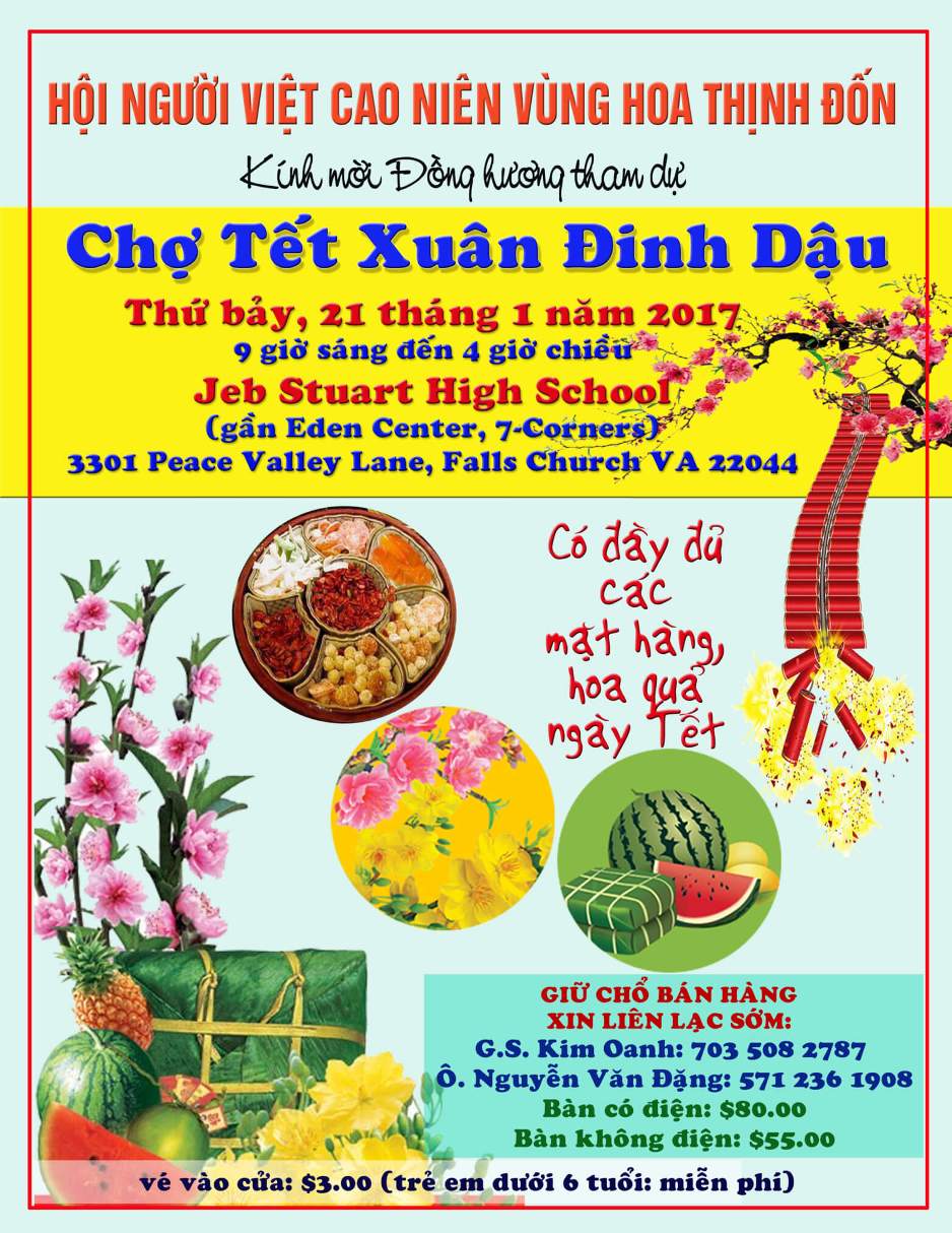 Ngày thứ Bảy, 21.1.2017, “Chợ Tết Việt Nam” do Hội Cao Niên Người Việt tổ chức hàng năm được diễn ra tại thành phố Falls Church, tiểu bang Virginia, US.