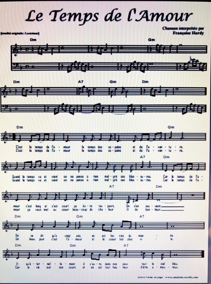 Françoise Hardy cùng Jacques Dutronc đồng sáng tác nhạc phẩm “Le Temps De L’amour” đầu thập niên 1970s do chính cô thu âm và phát hành.