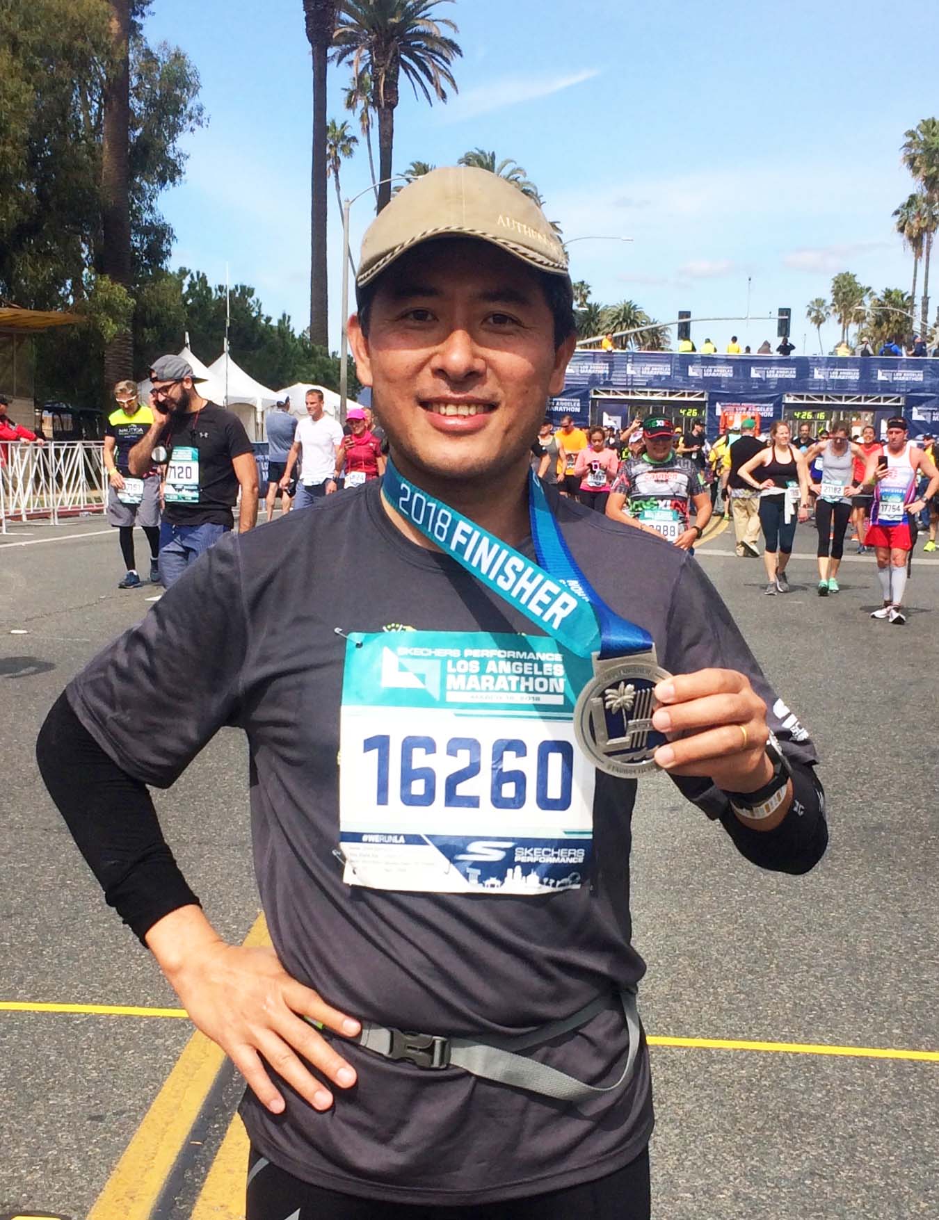 -Khi được nhận chiếc huy chương hoàn thành cự ly marathon tại Los Angeles, anh nghĩ gì?