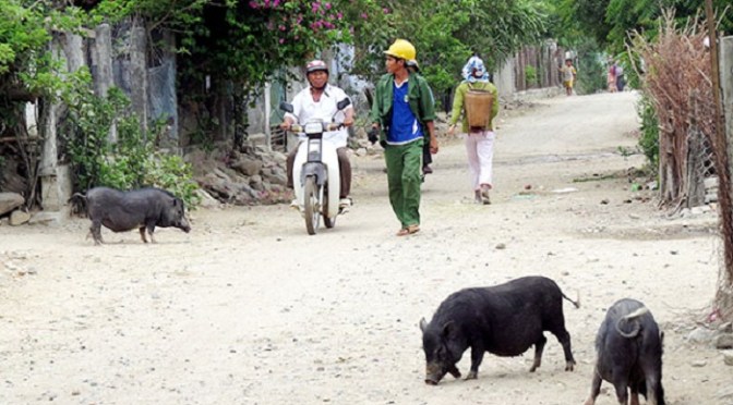 Trước đây anh em đồng bào buôn làng nuôi heo thả rông nên trong vườn đất nhiều mà không trồng được cây gì cả! Sau đó bok đã chỉ cách làm chuồng nhốt heo lại, cũng từ đó chung quanh vườn mỗi nhà đã trồng được rau cũng như cây ăn trái cho các em ăn. Và trong buôn làng, thôn còn nuôi được nhiều heo nhất là thôn Một. Do còn nhiều heo nên thỉnh thoảng ra đường còn thấy vài con heo đi lang thang, còn những thôn khác gần như không còn thấy heo thả rông nữa! Khi nghe mẹ Đo nói vườn bắp ở chung quanh nhà đã bị heo ăn hết, mình hỏi: