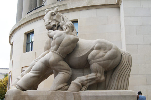 (Vào thời đó, Trung Quốc cũng gửi người qua Federal Trade Commission (nơi mình làm việc), vì họ nghe nói đây là một Commission thú vị nhất nước Mỹ. Các quý vị qua, và bọn mình chỉ vào tượng con ngựa và một người đàn ông vai u thịt bắp ở trần ôm cổ ngựa ghì ngược ngựa lại phía sau. Các quý vị TQ hỏi tượng đó có nghĩa gì? Chúng mình trả lời: Con ngựa là đại điện cho tư bản, anh chàng này là tụi tôi, Federal Trade Commission, kéo ghìm tư bản lại, không cho độc quyền và lạm dụng quyền hành kinh tế. Các quý vị trợn mắt ngạc nhiên: Không ngờ nước tư bản nhất thế giới mà lại có một tổ chức của chính phủ trung ương chuyên ghìm tư bản. Đó là điều lớn nhất mà quý vị TQ học được: Tư bản chẳng tư bản kiểu các quý vị hiểu bao năm nay.