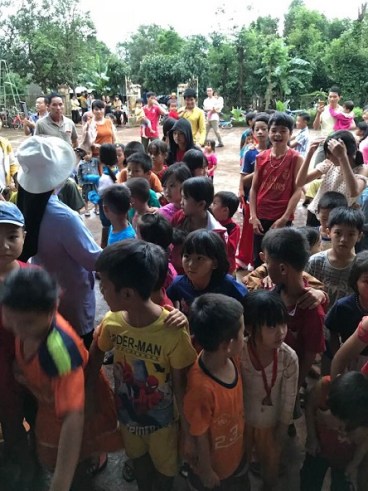 Chiều Chúa nhật mình và hai chị cùng đi với nhóm anh Lưu chở quà Trung Thu vào cho các em trong bản làng Dao. Do bản làng chưa có nhà sinh hoạt, bố Dũng đã cho mượn sân nhà bố Dũng để tổ chức.