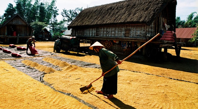– “Yăh để bao lúa ở đâu để mình vác vào cho.”