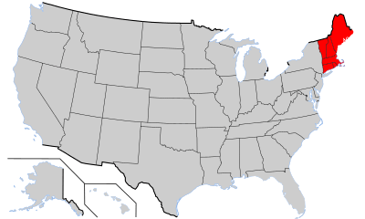 New England bao gồm các tiểu bang Maine, New Hampshire, Vermont, Massachusetts, Đảo Rhode, và Connecticut.