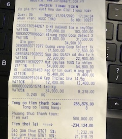Trong 4 hóa đơn dưới đây của Coopmart mà mình còn trong nhà, các bạn sẽ thấy trong số “Tiền thối lại” thường có số lẻ, như là 78.100 đồng. Coopmart trả lại mình 78 ngàn đồng, và bỏ qua 100 đồng. Vậy rất có lý trong thời nay. Chẳng có gì để phàn nàn.