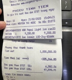 Trong 4 hóa đơn dưới đây của Coopmart mà mình còn trong nhà, các bạn sẽ thấy trong số “Tiền thối lại” thường có số lẻ, như là 78.100 đồng. Coopmart trả lại mình 78 ngàn đồng, và bỏ qua 100 đồng. Vậy rất có lý trong thời nay. Chẳng có gì để phàn nàn.