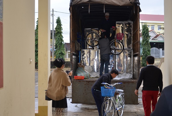 Chuyển xe đạp và giường bè xuống TTVH huyện M’Đrắk