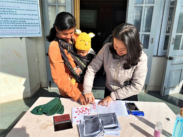 Phụ nữ xã Đắk Liêng điểm chỉ vào danh sách nhận quà