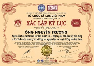 Tổ chức Kỷ lục Việt Nam vừa xác lập kỷ lục cho ông Nguyễn Trường, là “Người đầu tiên chế tác nên cây đàn Violon Tre”. Liên minh Kỷ lục Thế giới-Trung ương Hội Kỷ lục gia Việt Nam đánh giá “Violon Tre là nhạc cụ độc đáo, lấy cảm hứng từ đàn Violon của phương Tây kết hợp với nguyên liệu tre truyền thống của Việt Nam”. Dự kiến lễ công bố kỷ lục sẽ được tổ chức tại TP Hồ Chí Minh, trong tháng 4/2021.
