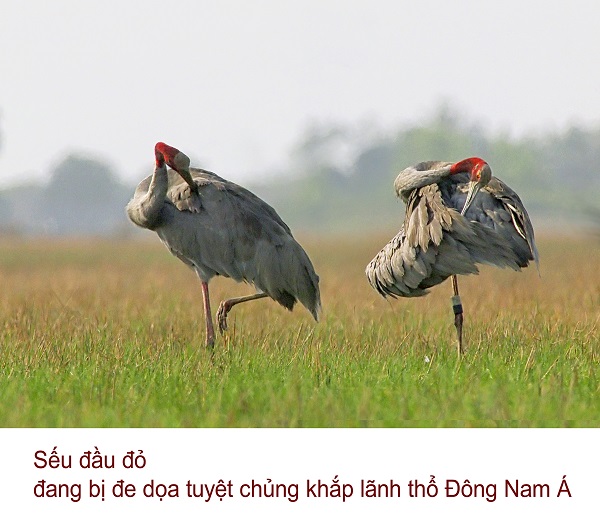 “Rẽ mỏ thìa- Spoon billed Sandpiper. Chỉ còn hơn 200 cặp trên toàn cầu. Di cư từ Bắc cực vào bãi bồi phía nam VN. Bị đe dọa tuyệt chủng do nạn giăng lưới bẫy chim ven các bờ biển rừng ngập mặn VN”; “ Hạc cổ trắng-Wooly necked Stork- Loài chim Sách Đỏ cần bảo vệ khỏi sự tuyệt chủng tại VN, nay đã biến mất khỏi vùng đồng bằng sông Cửu long, chỉ còn rất ít ở rừng Tây Nguyên và Đông nam bộ”; “Khứu Ngọc Linh- Golden winged Laughingthrush-Loài đặc hữu cực kỳ quý hiếm, sống trên đỉnh Ngọc Linh, loài chim duy nhất có ở VN”; “Khướu Konkakinh-Checnut eared Laughingthrush-Loài chim đặc biệt bị đe dọa biến mất khỏi lãnh thổ Tây Nguyên do nạn săn bắt. Loài đặc hữu duy nhất toàn cầu”; “Sếu đầu đỏ đang bị đe dọa tuyệt chủng khắp lãnh thổ Đông Nam Á” v.v…