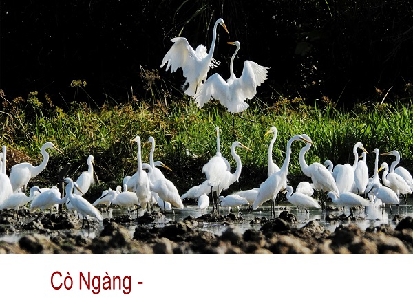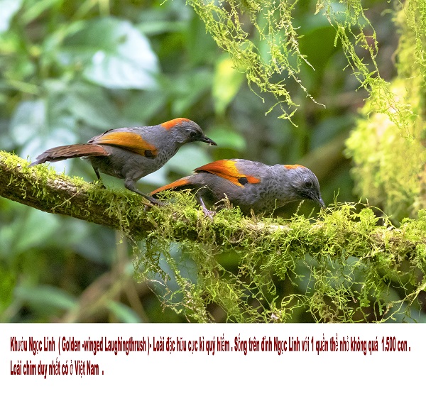 “Rẽ mỏ thìa- Spoon billed Sandpiper. Chỉ còn hơn 200 cặp trên toàn cầu. Di cư từ Bắc cực vào bãi bồi phía nam VN. Bị đe dọa tuyệt chủng do nạn giăng lưới bẫy chim ven các bờ biển rừng ngập mặn VN”; “ Hạc cổ trắng-Wooly necked Stork- Loài chim Sách Đỏ cần bảo vệ khỏi sự tuyệt chủng tại VN, nay đã biến mất khỏi vùng đồng bằng sông Cửu long, chỉ còn rất ít ở rừng Tây Nguyên và Đông nam bộ”; “Khứu Ngọc Linh- Golden winged Laughingthrush-Loài đặc hữu cực kỳ quý hiếm, sống trên đỉnh Ngọc Linh, loài chim duy nhất có ở VN”; “Khướu Konkakinh-Checnut eared Laughingthrush-Loài chim đặc biệt bị đe dọa biến mất khỏi lãnh thổ Tây Nguyên do nạn săn bắt. Loài đặc hữu duy nhất toàn cầu”; “Sếu đầu đỏ đang bị đe dọa tuyệt chủng khắp lãnh thổ Đông Nam Á” v.v…