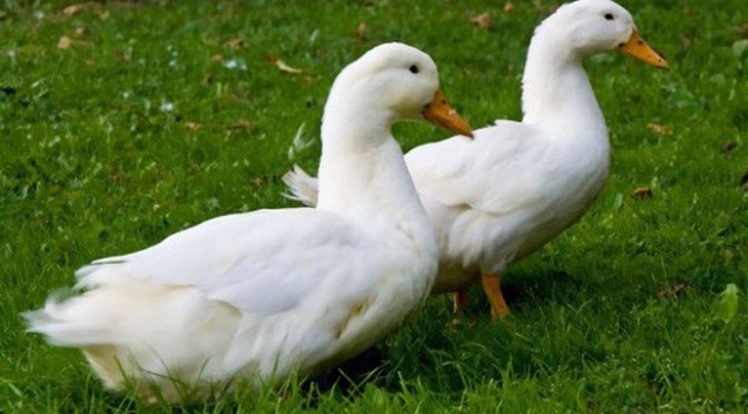 Hai vịt con mới lớn, hơi trăng trắng, hay ăn và chơi quanh cái vũng nước nhỏ mà bà chủ gọi là ao dưới gốc cây hoa gạo đỏ.