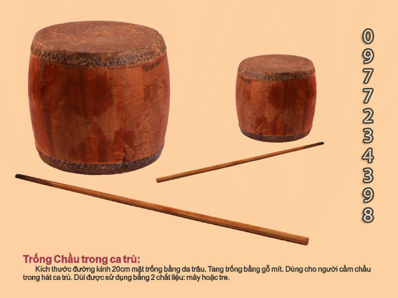 Đánh trống cho ả đào hát gọi là cầm chầu. Dùi trống, làm bằng gỗ quý, gọi là roi chầu. Cầm chầu là tham gia vào ban nhạc, nghĩa là cũng có khổ, có tiếng trống khoan, trống mau như đàn và phách. Người quan viên cầm chầu ngoài chức năng tham gia ban nhạc với vai trò cầm quyền âm nhạc, còn có nhiệm vụ quan trọng là chấm thưởng mỗi khi đào nương hát hay hoặc hát đến câu văn hay, chữ hay, ý hay và còn chấm cả đàn hay, phách hay… Các khái niệm thưởng chữ, thưởng hơi, thưởng ý, thưởng đàn, thưởng phách xuất hiện vì những lý do như vậỵ Người cầm chầu đánh “cắc” là chấm thưởng. Tiếng trống thể hiện tính cách và khả năng âm nhạc, văn học của người cầm chầu. Điểm thưởng phải tinh, phải đích xác, không thưởng sai, không thưởng liều. Trước khi vào hát dùng ba khổ trống sơ cổ, tòng cổ, trung cổ; khi chuẩn bị hát, để dục đào, kép vào hát, thì dùng thôi cổ, khi hát dùng các khổ song châu, liên châu, xuyên tâm, chính diện, phi nhạn, lạc nhạn, quán châu.