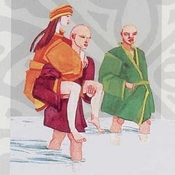 “Thầy bỏ cô ấy xuống đằng đó rồi,” Tanzan nói. “Con còn bế cô ấy sao?”