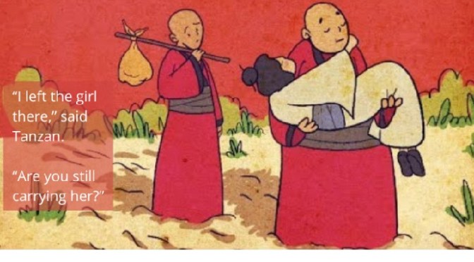 “Đi, cô em,” Tanzan nói ngay. Bế cô gái trên đôi tay, thiền sư mang cô qua vũng bùn.